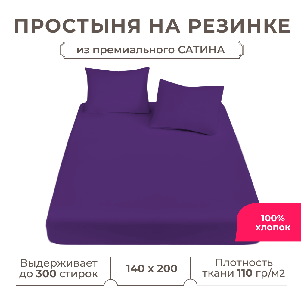Простынь на резинке Lisleep 140х200, натяжная, сатин (100% хлопок), баклажановый информация: