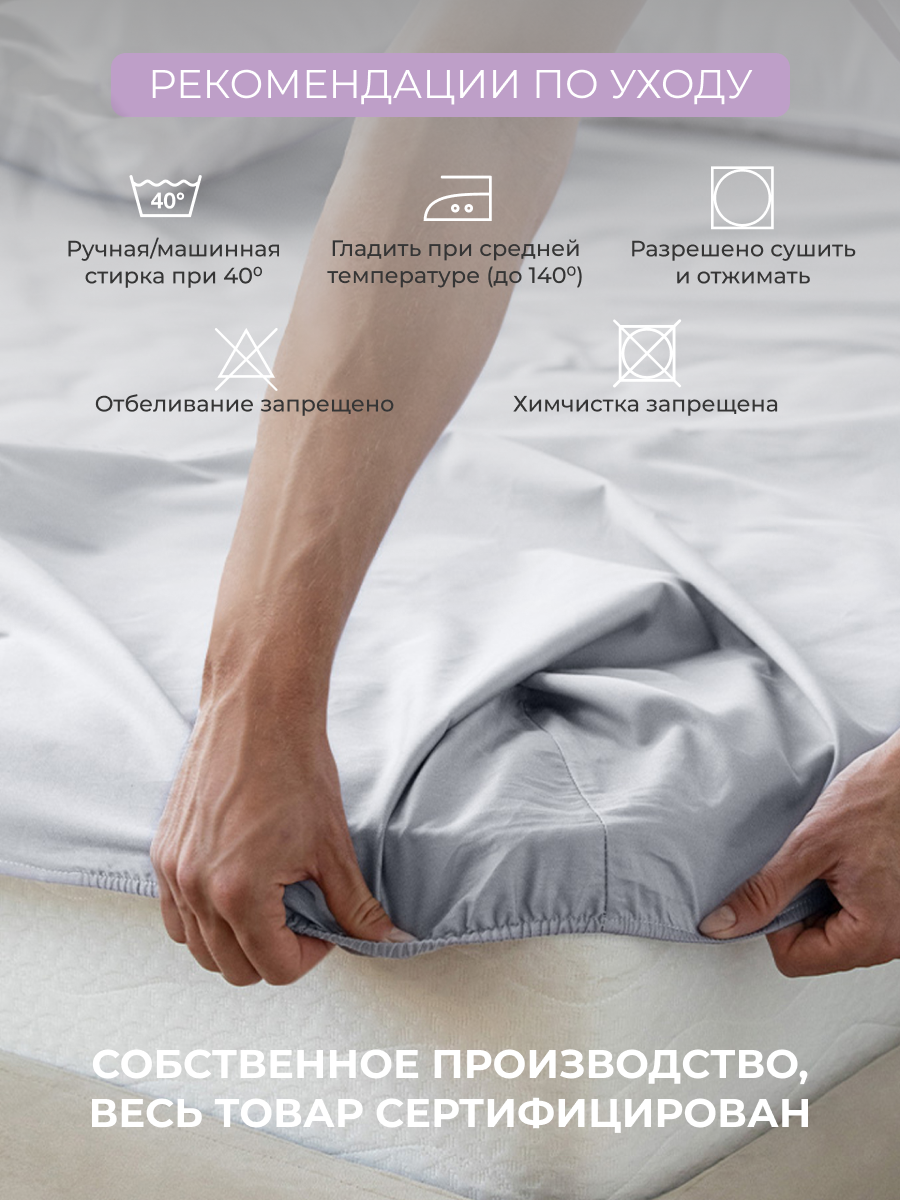 Простынь на резинке однотонная Моноспейс (аналог икеа), Бузина, 2 спальное, 160х200 ,100% хлопок, сатин, Ecotex 2 204 ₽
