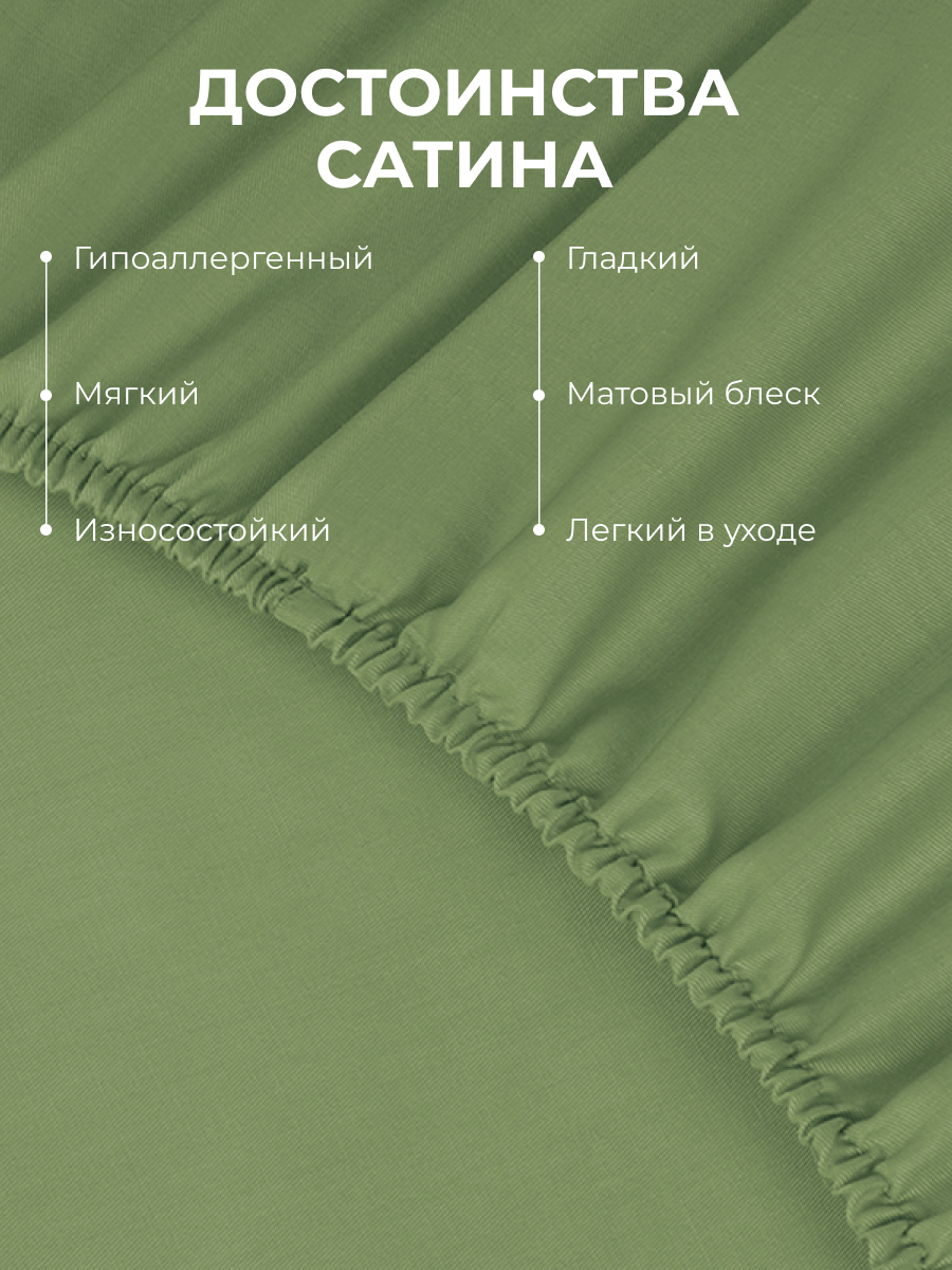 Простыня на резинке однотонная Моноспейс (аналог икеа), Зеленый, 2 спальное, 160х200 ,100% хлопок, сатин, Ecotex 2 204 ₽