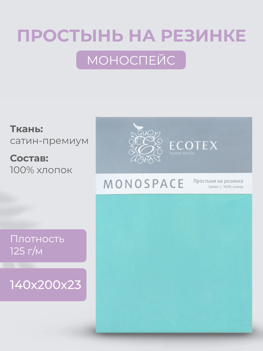 Отзывы на Простынь на резинке Ecotex "Моноспейс", сатин - 100% хлопок, 140х200х23 бирюзовый