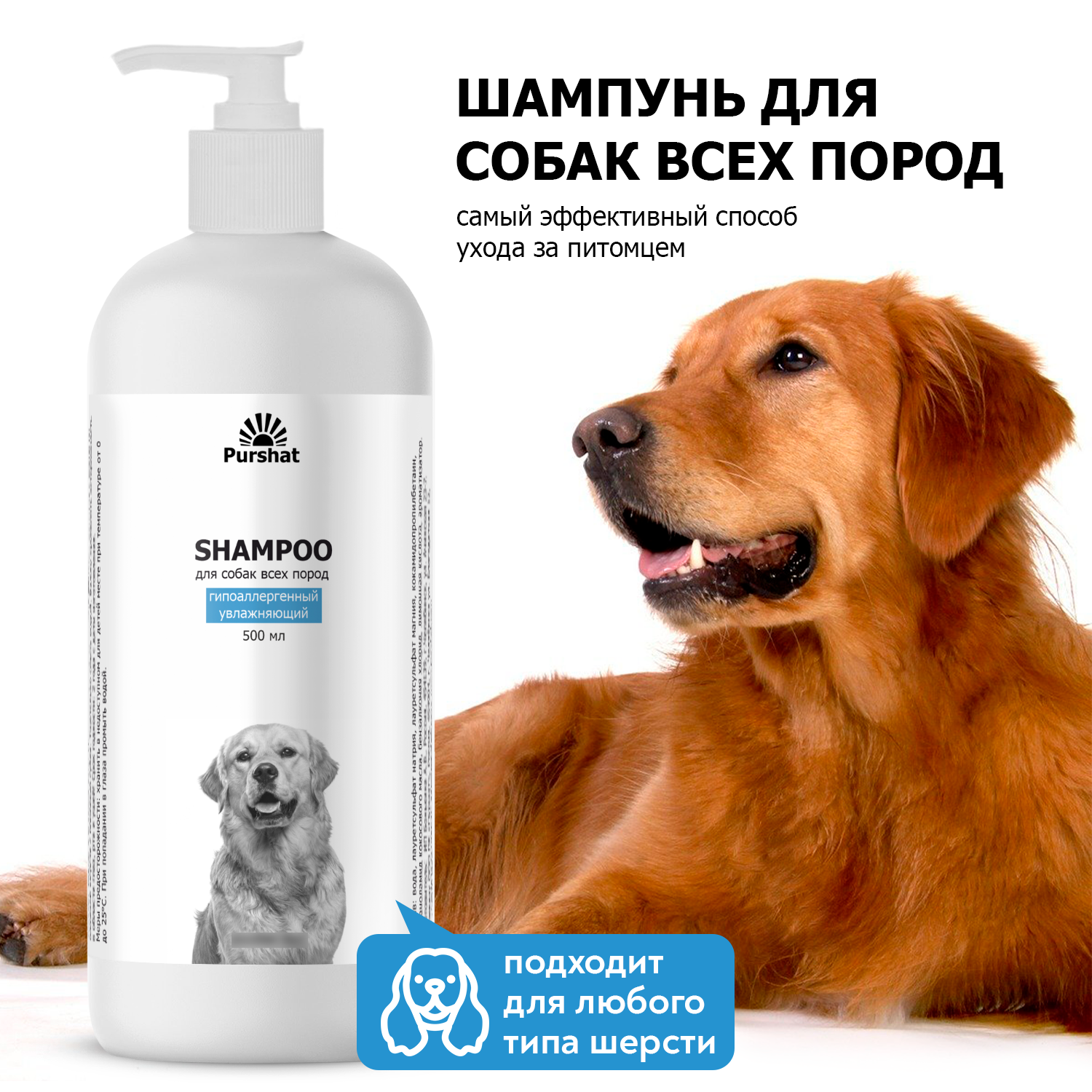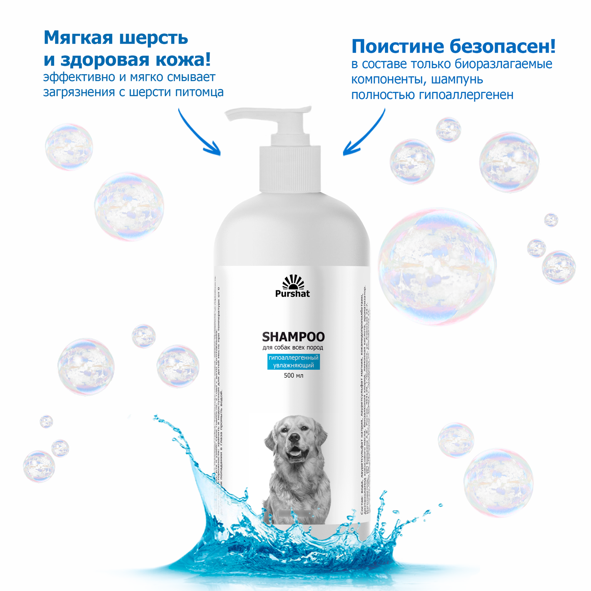 Эко шампунь для собак Пуршат 500 мл. увлажняющий, гипоаллергенный, от запаха, для короткошерстных и длинношерстных информация:
