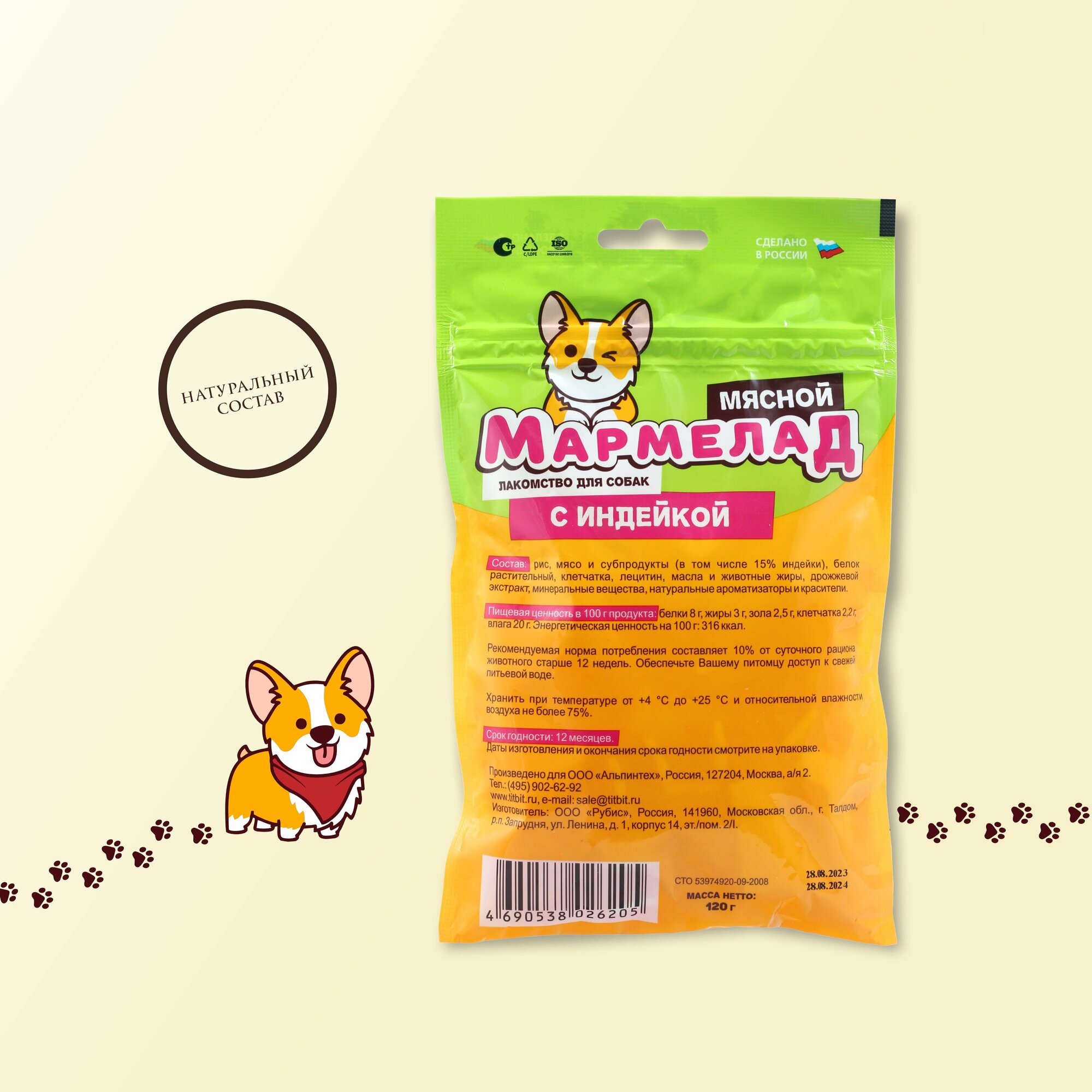 Лакомство для собак TiTBiT Мармелад мясной с индейкой 120 г информация: