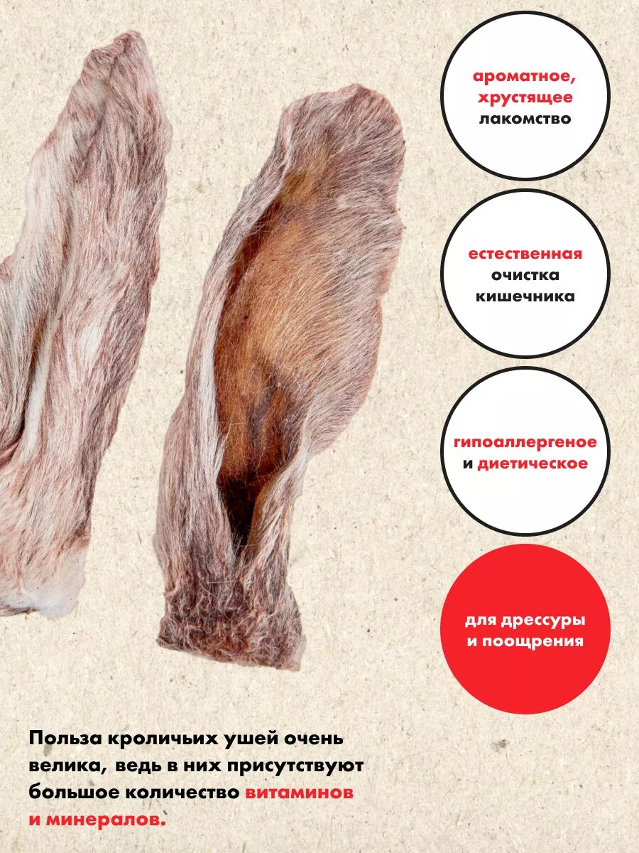 Уши кролика натуральные 200 грамм 10шт 5 530 ₽