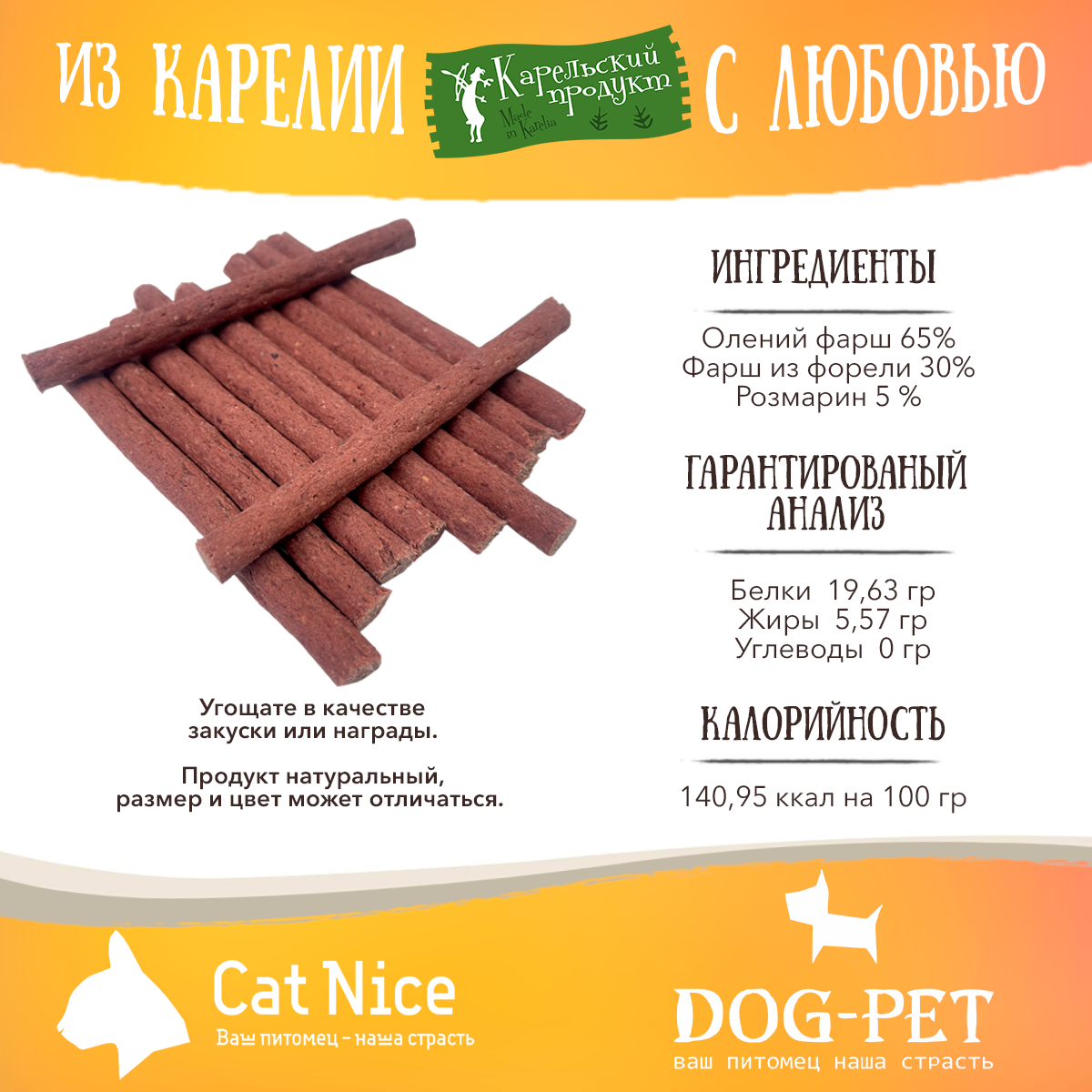 10 цен на Лакомства Dog-Pet Оленьи колбаски с Карельской форелью для собак и кошек всех пород