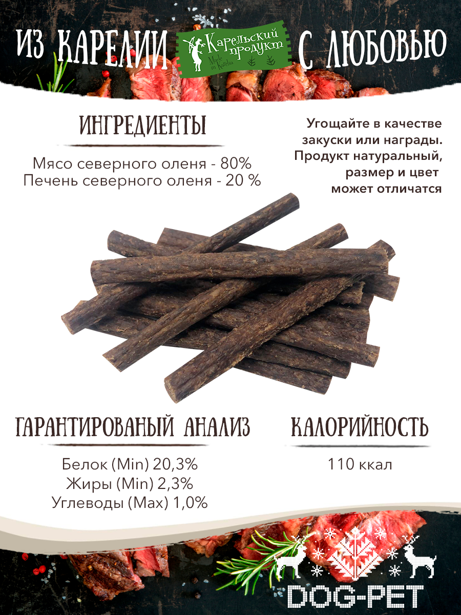 Лакомства Dog-Pet Оленьи колбаски Classic для собак всех пород . Сделано в Карелии