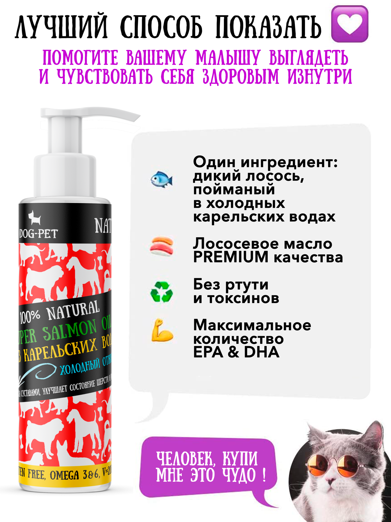 Антилинька. Карельское лососевое масло фармацевтического качества - чистая омега-3, жидкая пищевая добавка для собак и кошек Омега 3 информация: