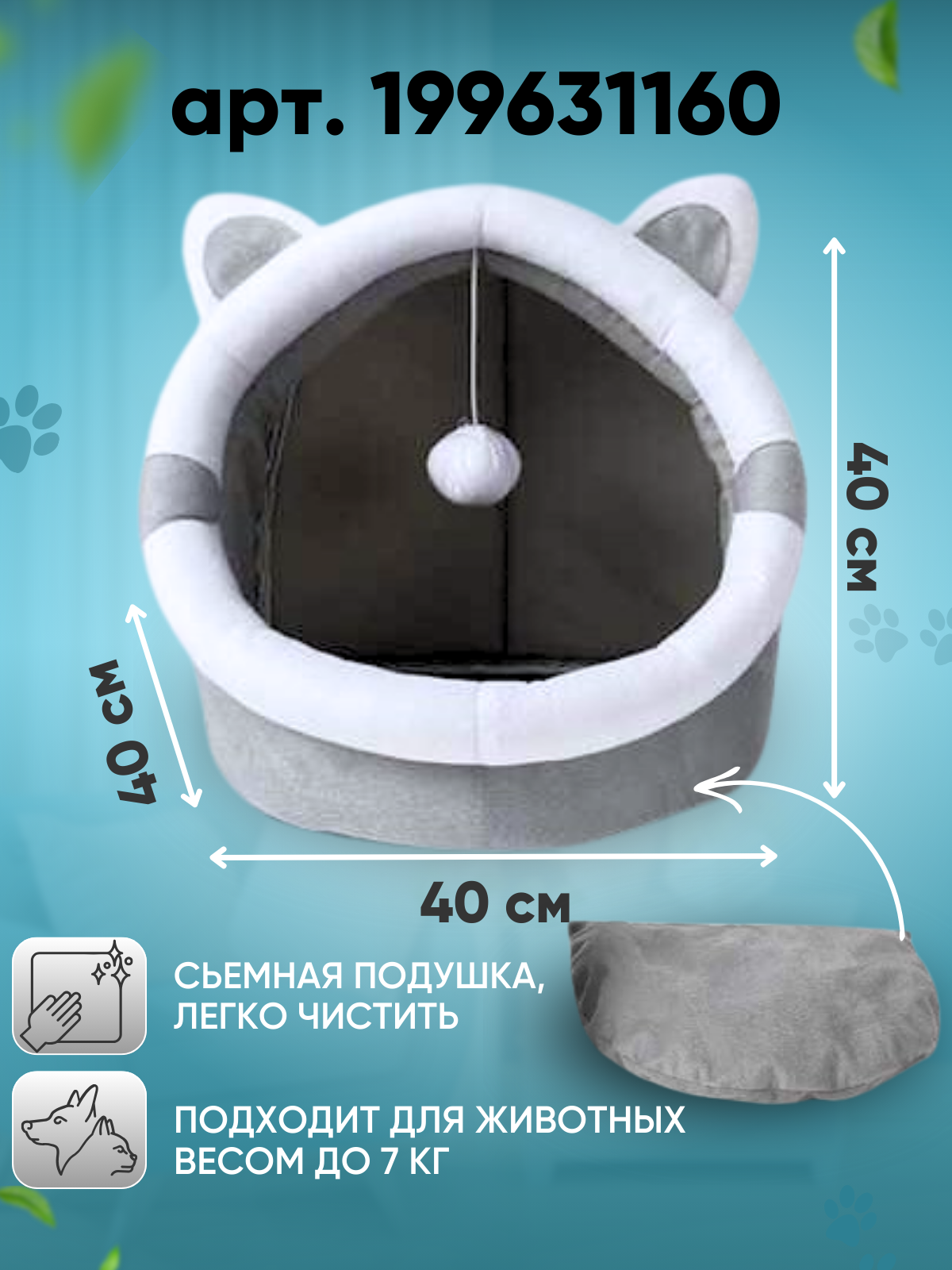 Домик "Кошачьи ушки" для кошки и собак, 40 см * 40 см * 40 см, цвет серый информация: