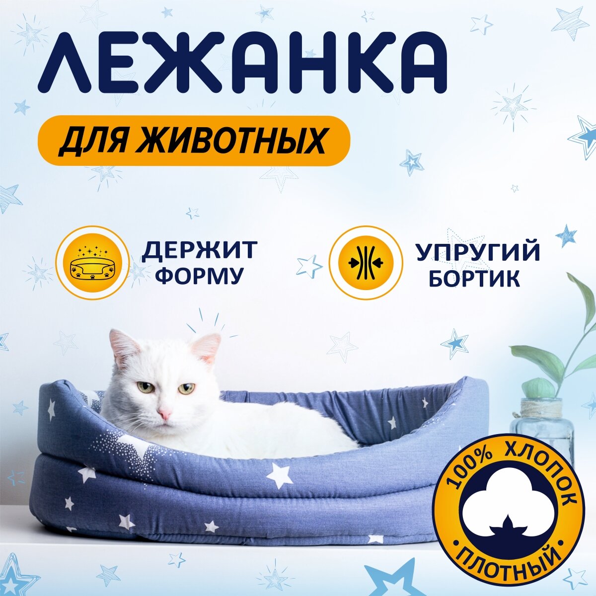 Лежанка с бортиком для животных Petmil "Релакс" 50х40 см Звездное небо синее информация: