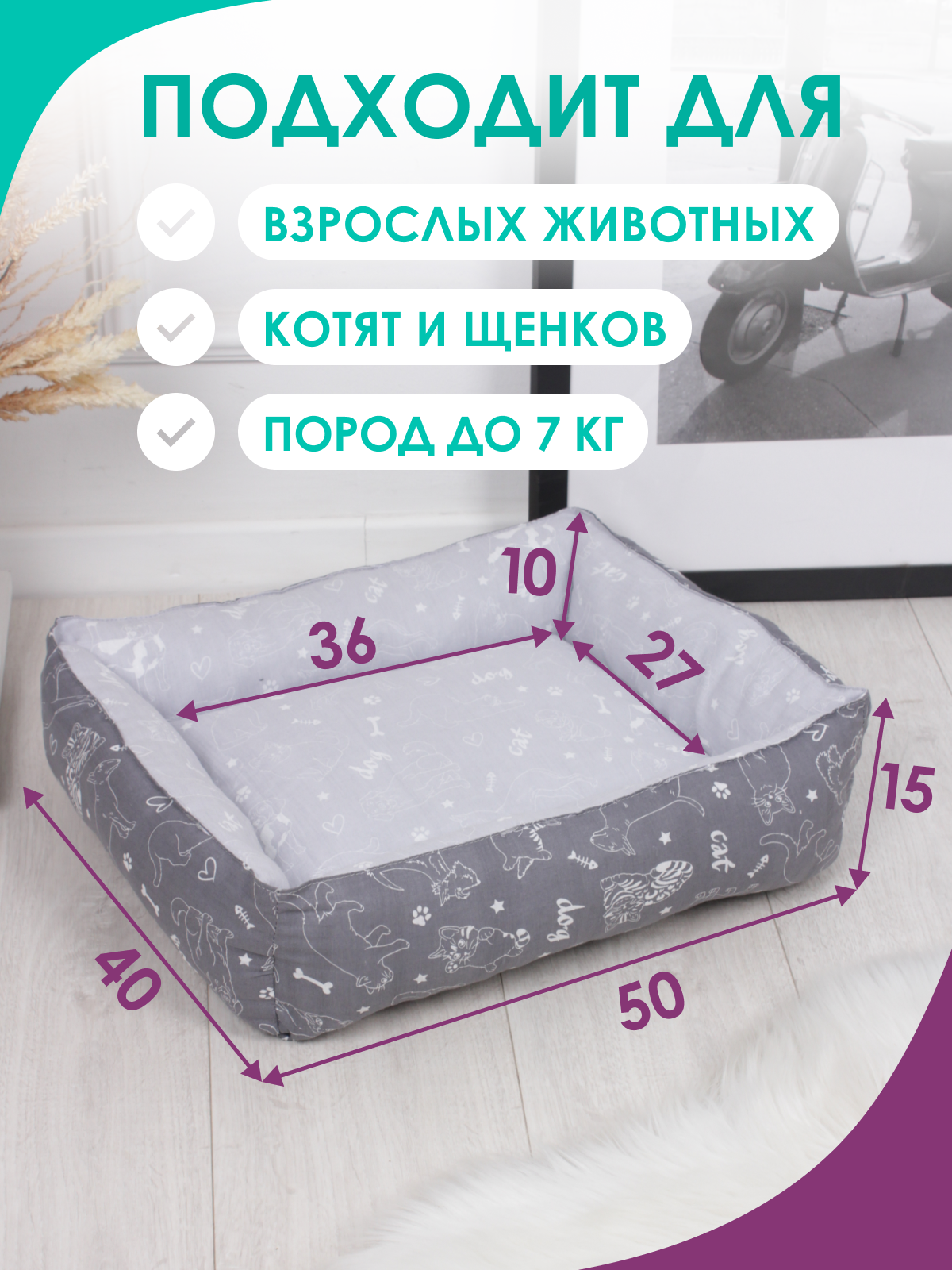 Отзывы на Двусторонняя лежанка для кошек и собак мелких пород 40x50x15 см цвет темно сер/светло серый