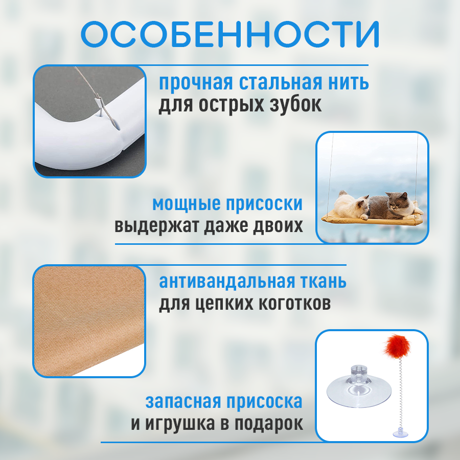 Подвесной гамак лежанка для кошек на окно / полка-лежак / до 15кг информация: