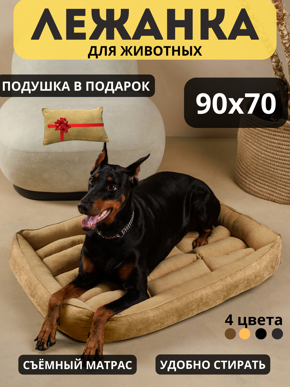 Лежанка для больших и крупных пород собак 105*80 см со съемной подушкой 2 900 ₽
