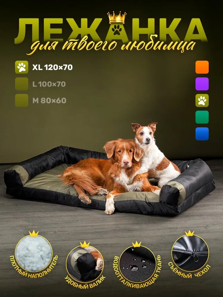 10 цен на Диван-лежак антивандальный для собак очень крупных пород 120*70см Хаки олива / черный