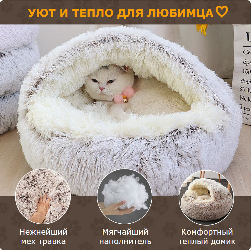 Отзывы на Мягкая плюшевая закрытая лежанка домик для кошек и собак 50 см (мех)