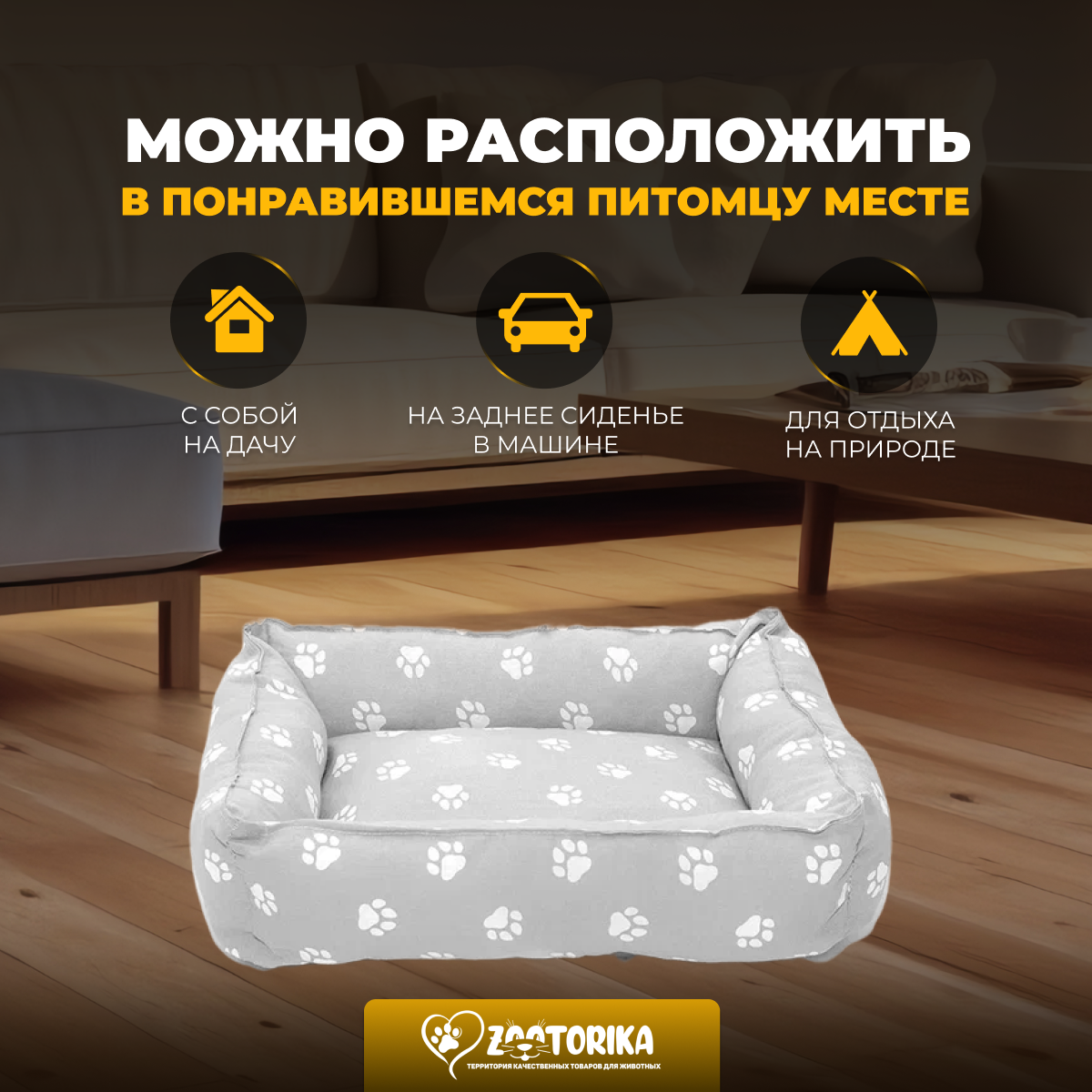 10 цен на Лежанка для кошек и собак SunBed прямоугольная "Лапки", серая, 45х35 / Лежак для животных мелких пород