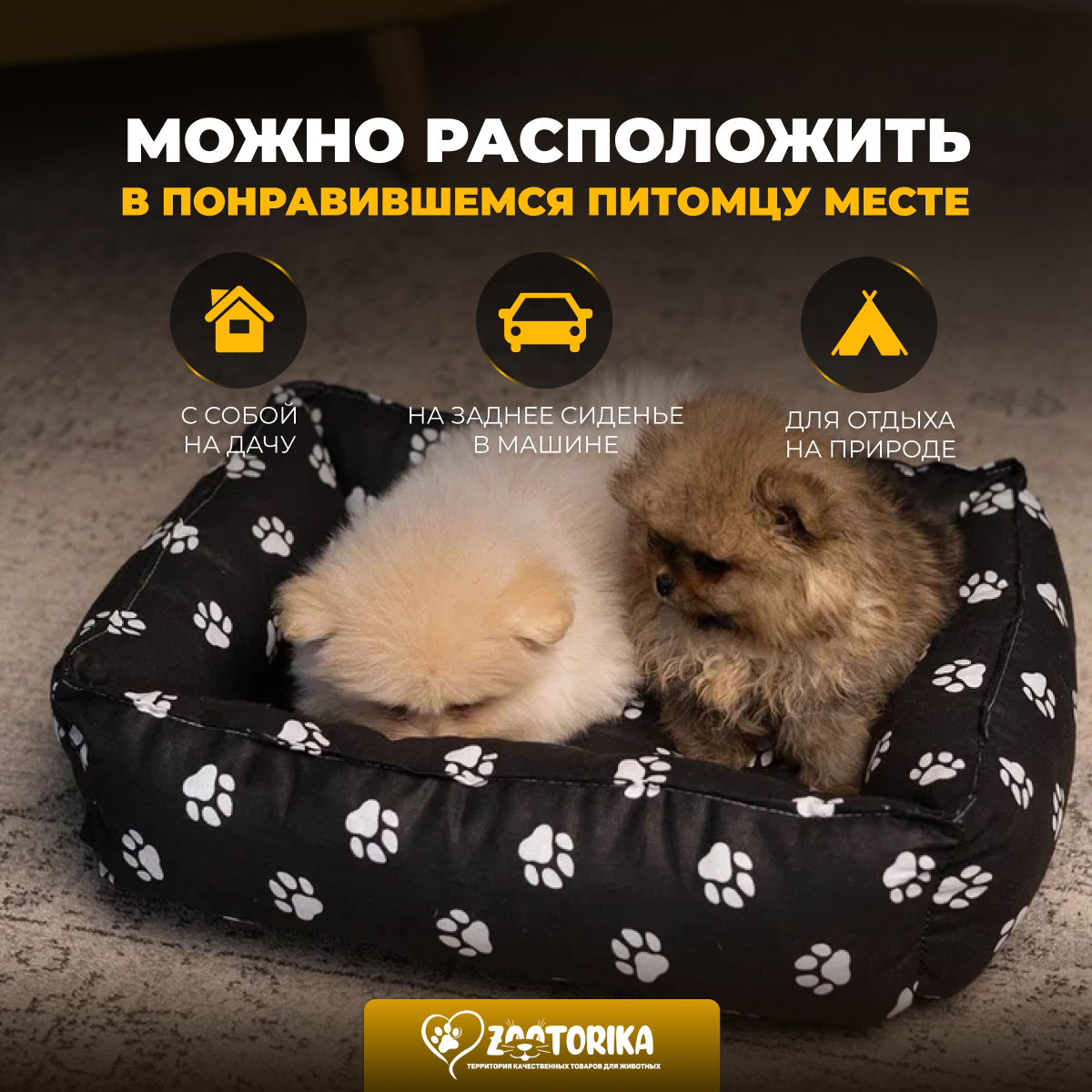 10 цен на Лежанка для кошек и собак SunBed прямоугольная "Лапки", черная, 45х35 / Лежак для животных мелких пород