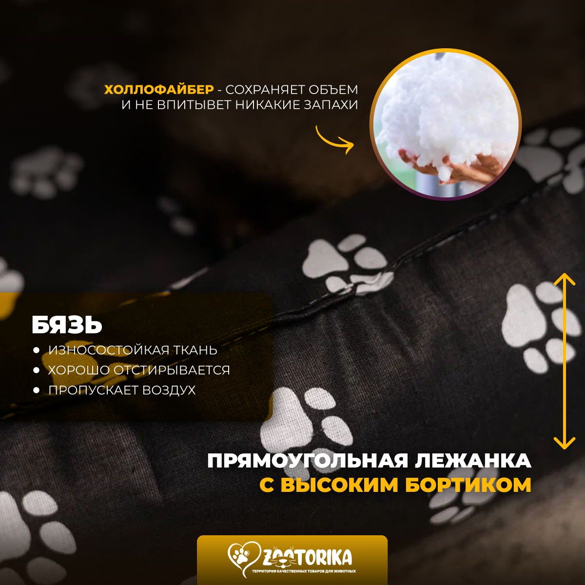 Лежанка для кошек и собак SunBed прямоугольная "Лапки", черная, 45х35 / Лежак для животных мелких пород информация: