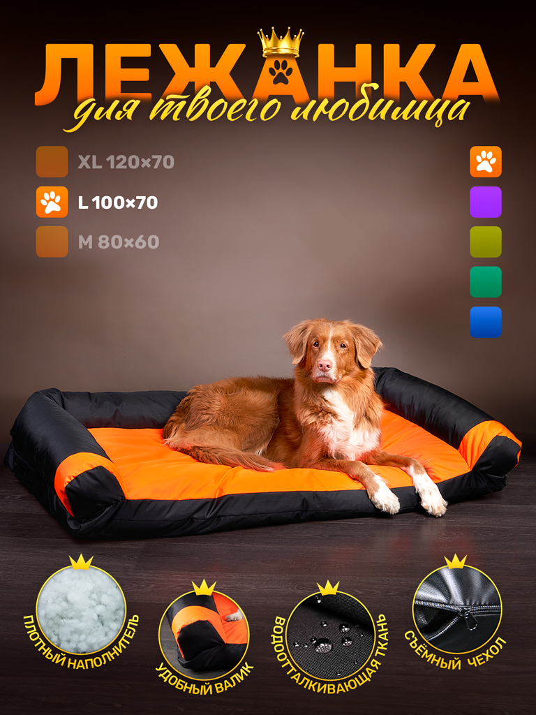 10 цен на Диван-лежак антивандальный для крупных собак и кошек 100*70см Orange/ black