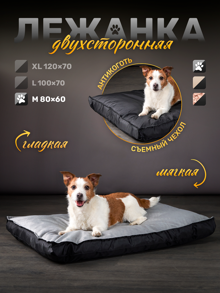 Лежанка антивандальная для собак средних и крупных пород микровелюр 80*60 см Серый / черный информация: