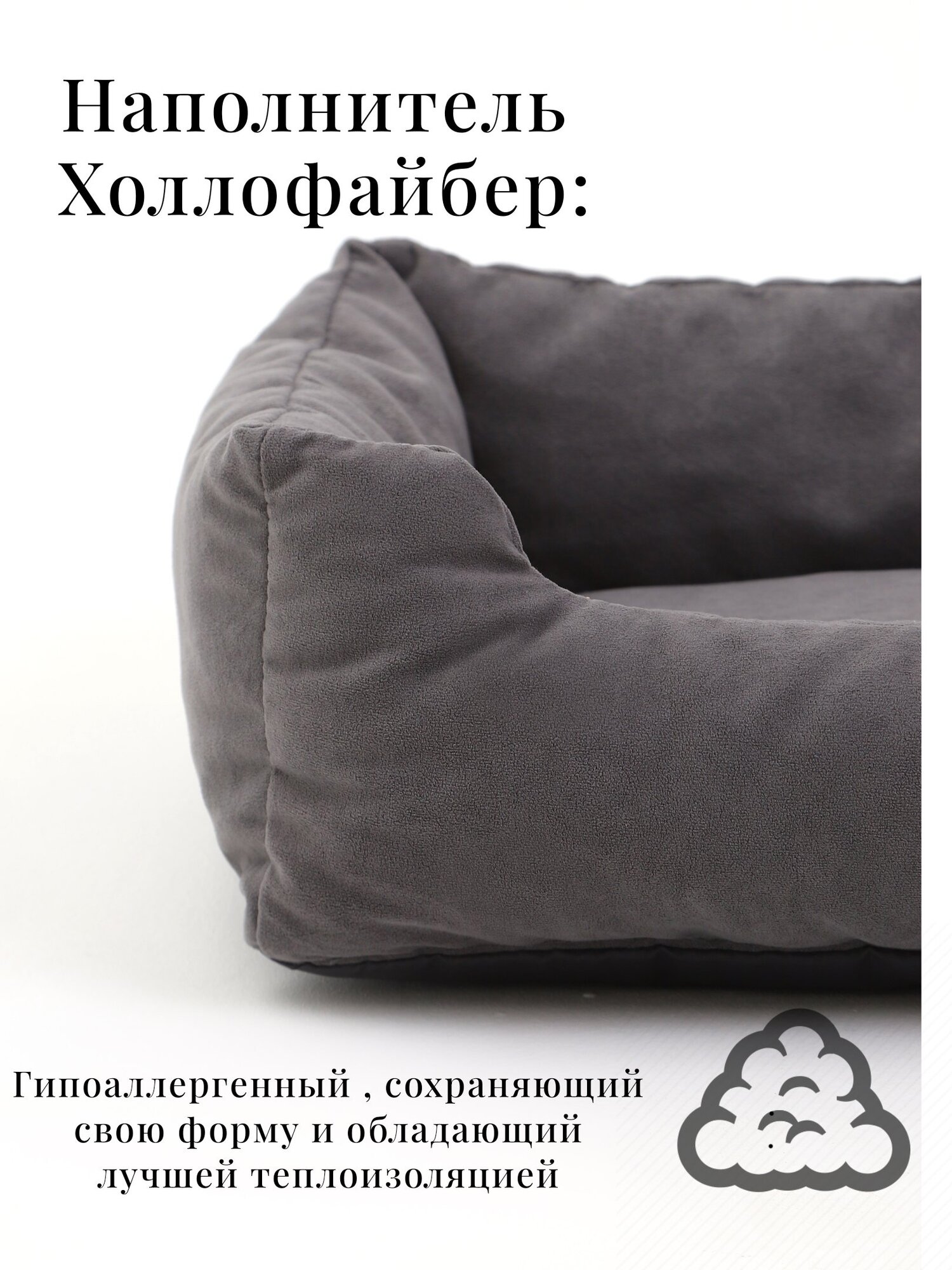 Лежанка, для кошек и собак, маленьких и средних пород, прямоугольная, темно-серый, 70х50х23 см 2 351 ₽