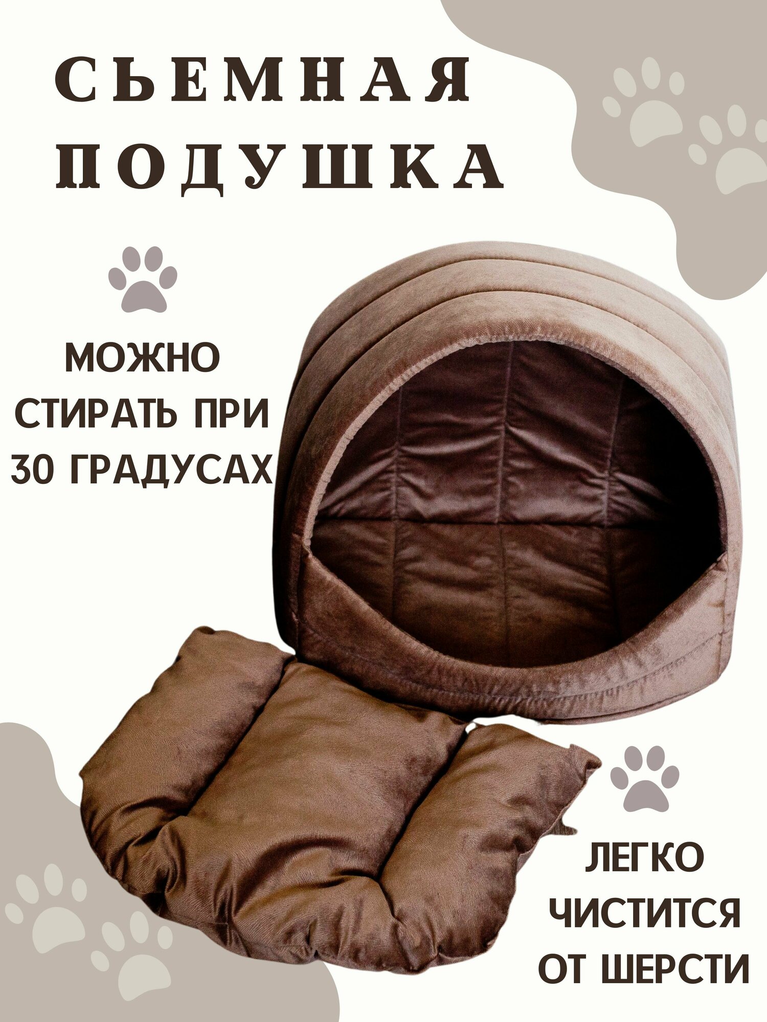 Отзывы на Лежанка домик для кошек, для собак мелких и средних пород, лежак для животных, со съёмной подушкой, цвет: коричневый, 42x50 см