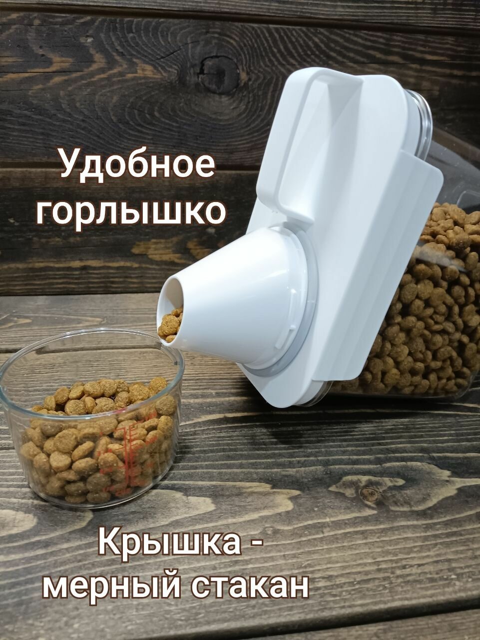| Подробная комплектация | Контейнер для корма, крышка, мерный стакан |