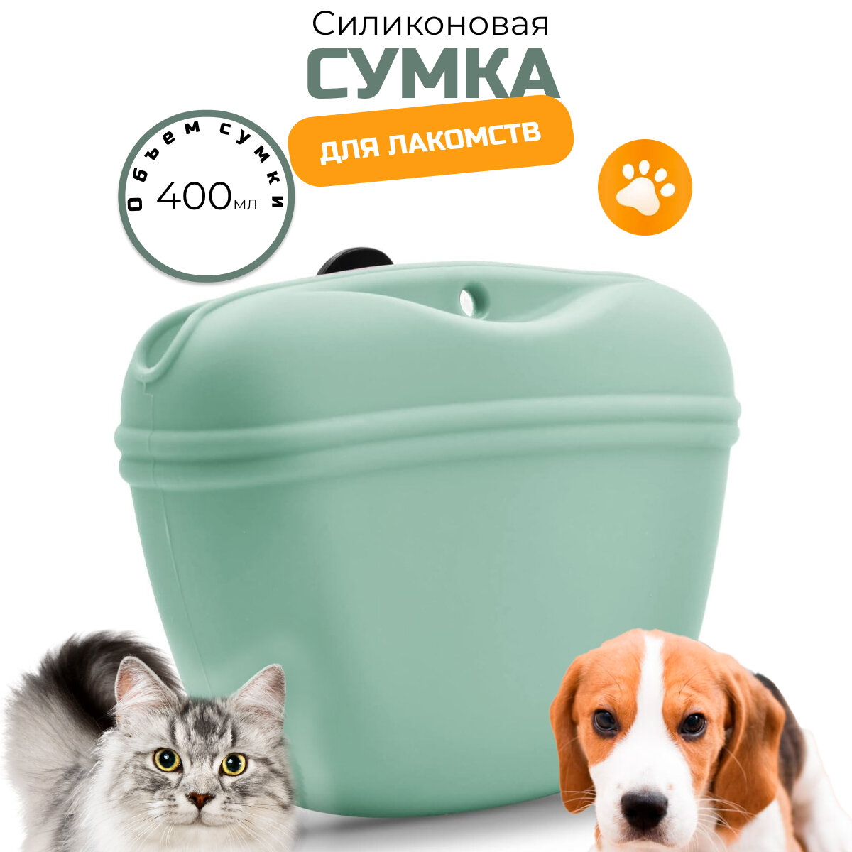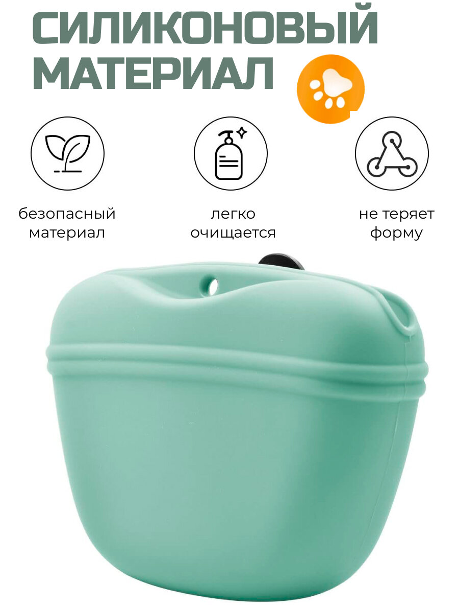 Сумочка для лакомств силиконовая с магнитным замком - зеленая информация: