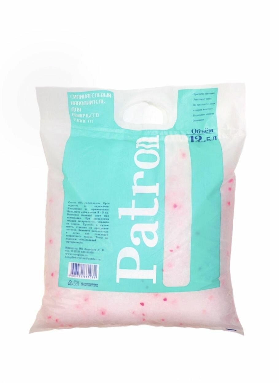 Силикагелевый наполнитель для кошачьего туалета Patron розовые гранулы, впитывающий 12,5л, 4.4 кг информация: