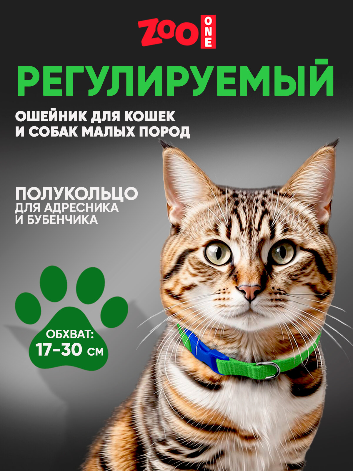 10 цен на Ошейник для собак и кошек, ширина 10 мм, регулировка длины от 17 до 30 см, пластик, фастекс, лента (зелёный) 70-0879