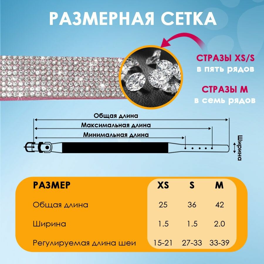 Ошейник со стразами для кошек и собак мелких пород (Розовый) XS информация: