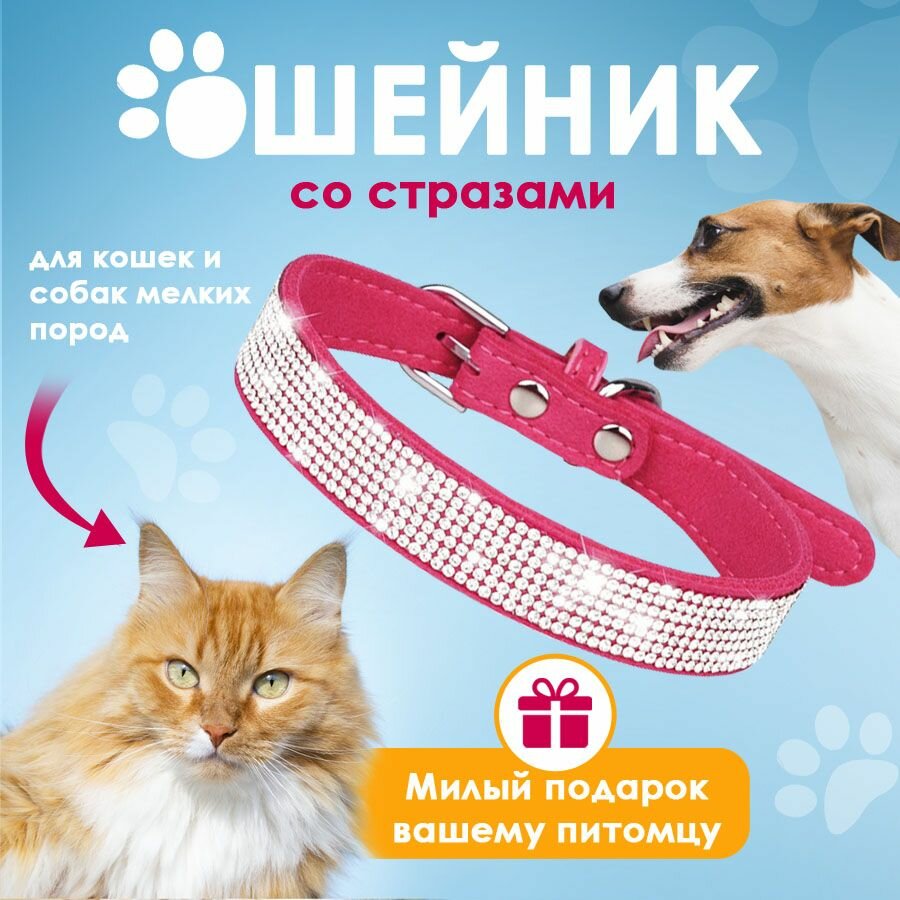 Отзывы на Ошейник со стразами для кошек и собак мелких пород (Розовый) XS