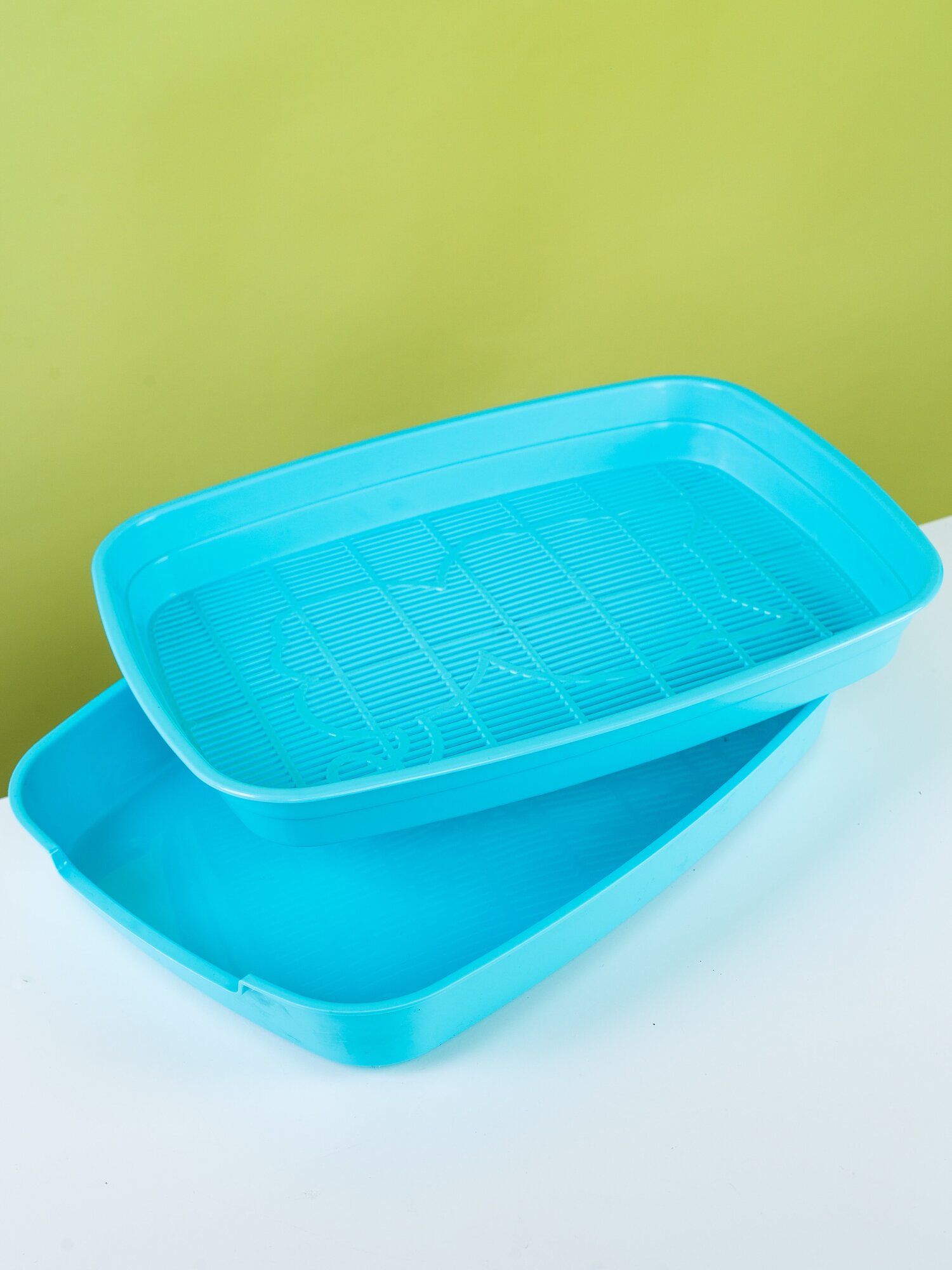Туалет для кошек прямоугольный с ассиметричным бортом "Волна", серый/голубой, 455*350*200мм, 1шт