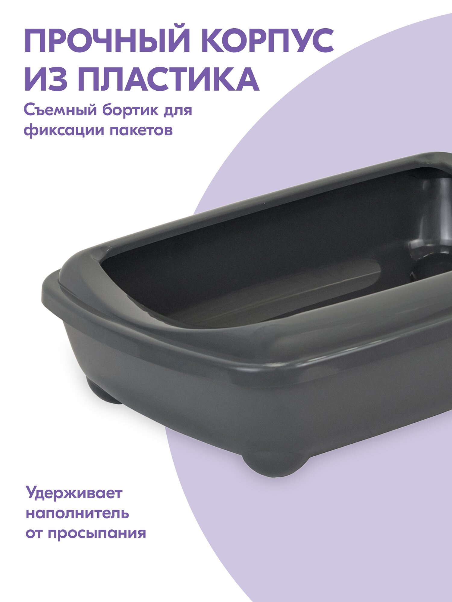 Отзывы на Туалет для кошек, лоток для кошек "PetTails" для Мейн-кунов глубокий, большой (под наполнитель) 56*43*15см, серый