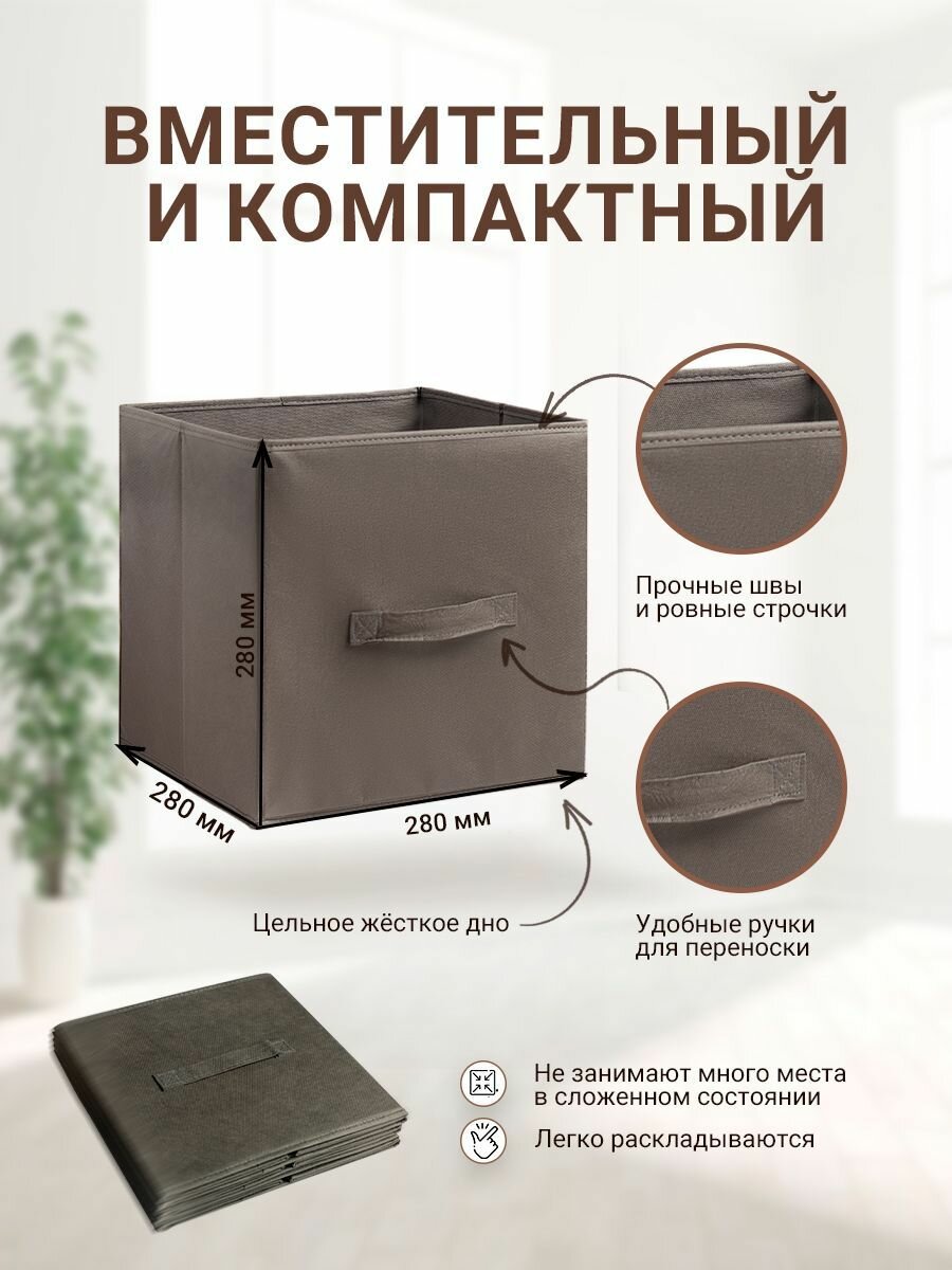 Коробки для хранения 3 шт. Gemlux Уютный дом 28х28х28 см, тканевые складные короба для игрушек, контейнеры для одежды, ящики для белья, органайзеры для мелочей, цвет коричневый 1 130 ₽