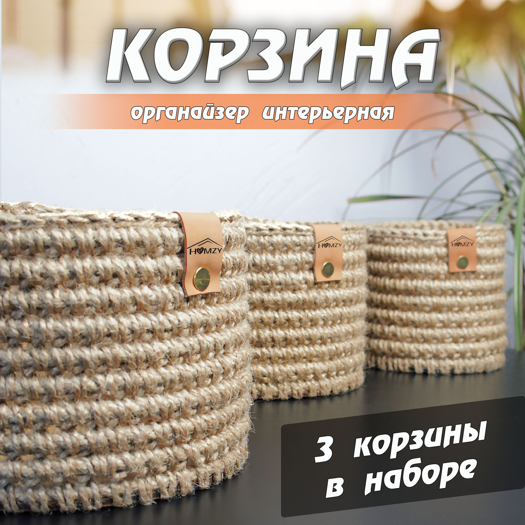 Набор плетеных вязаных корзин из джута для хранения дома и на даче HOMZY информация: