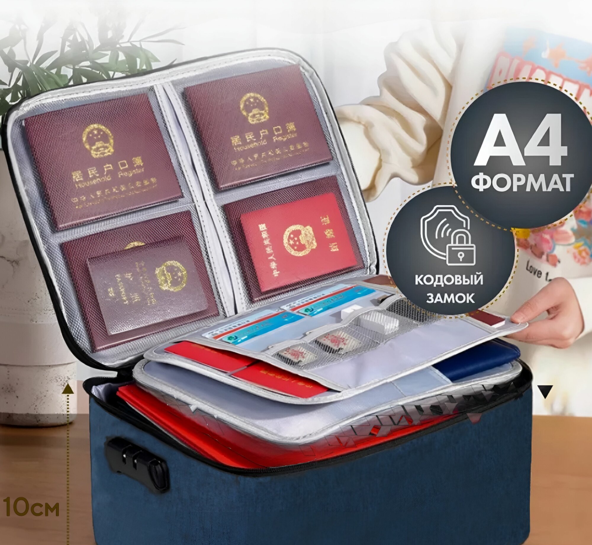 Отзывы на Синий органайзер для хранения документов А4 с кодовым замком. Сумка для документов. Дорожный органайзер для документов BERTA