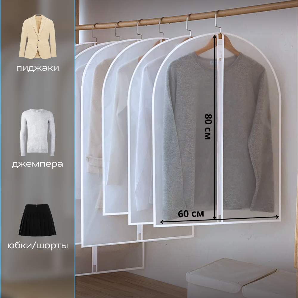 Чехлы для одежды и хранения вещей прозрачные 80 см, 5 шт - №1 информация: