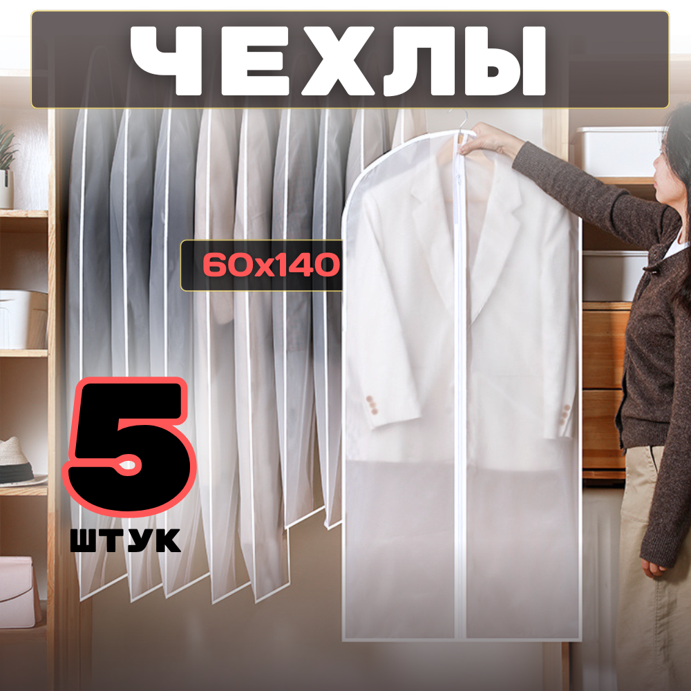 Чехлы для одежды и хранения вещей прозрачные 120 см, 5 шт - №3 710 ₽