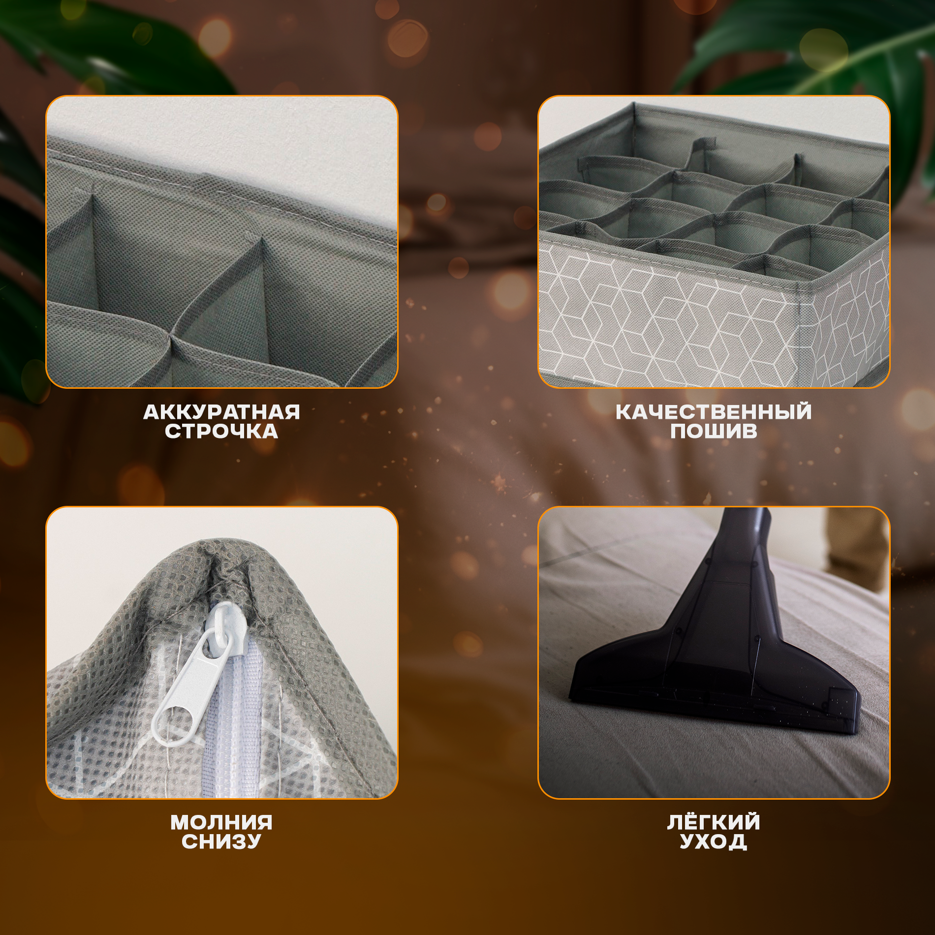 Органайзер для белья Доляна Гусиная лапка, 16 ячеек, 32х32х12 см, цвет бежевый 424 ₽