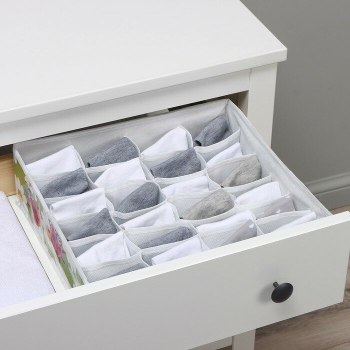Органайзер для хранения белья Доляна «Смарт», 24 ячейки, 32×32×10 см, цвет серый