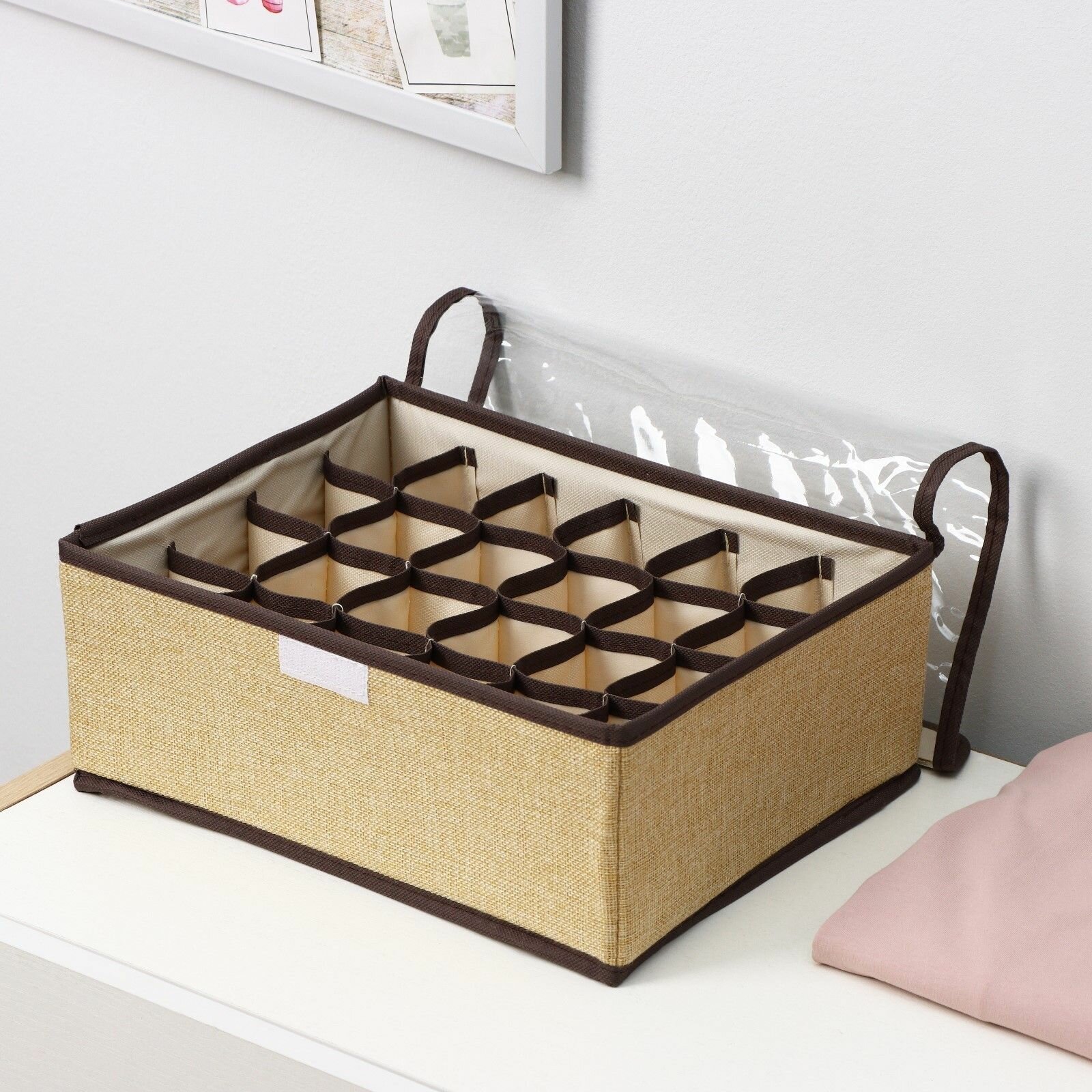 10 цен на Органайзер для хранения белья с прозрачной крышкой Доляна «Тео», 24 отделений, 32×23×12 см, цвет бежево-коричневый