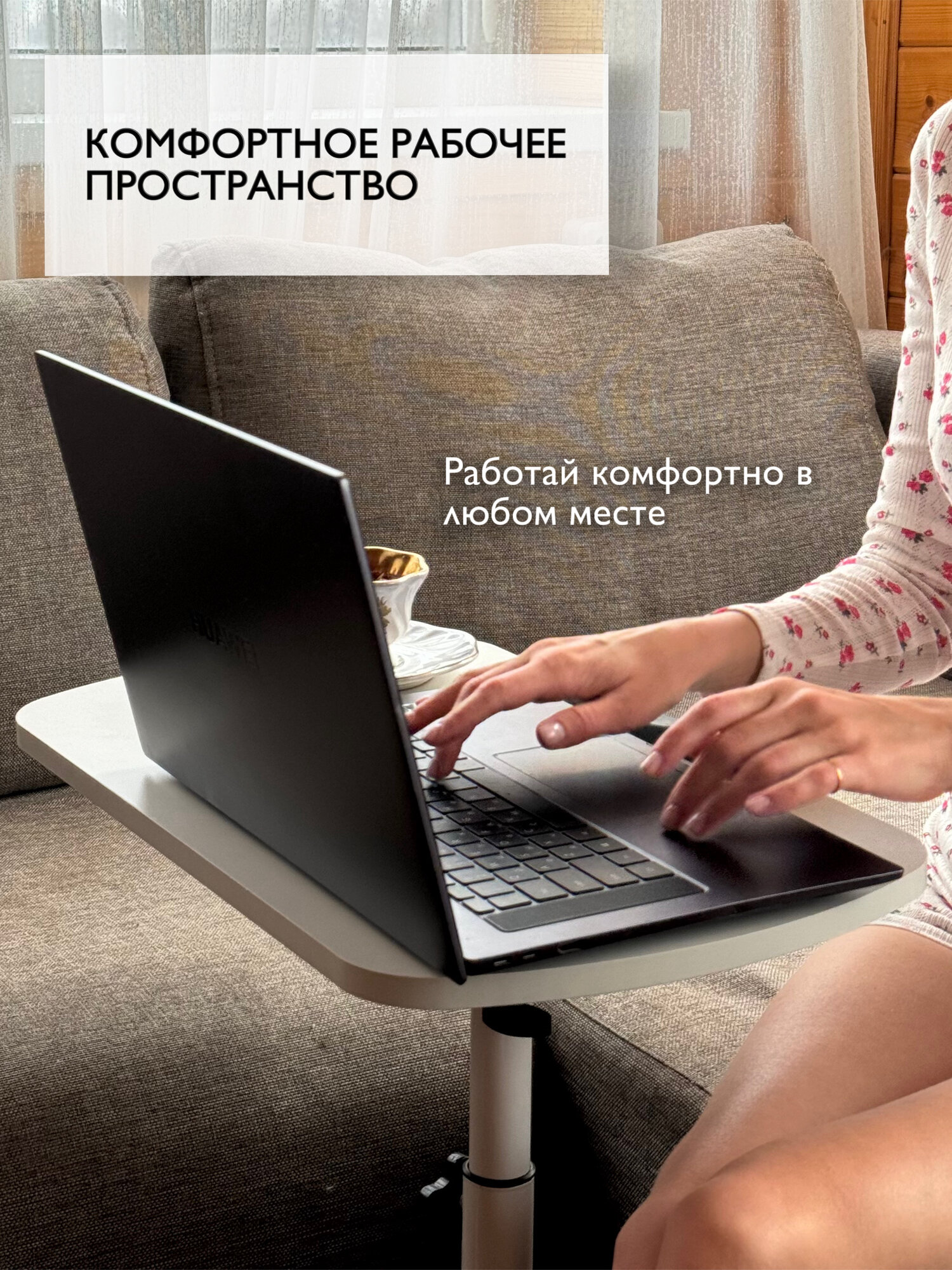 Столик для ноутбука WELHOME складной прикроватный на колесиках, белый информация: