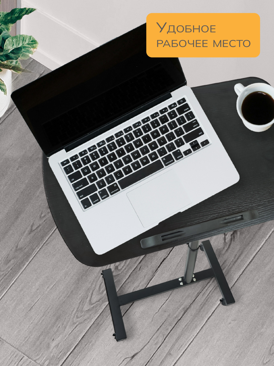 Столик для ноутбука WELHOME складной прикроватный на колесиках, черный информация: