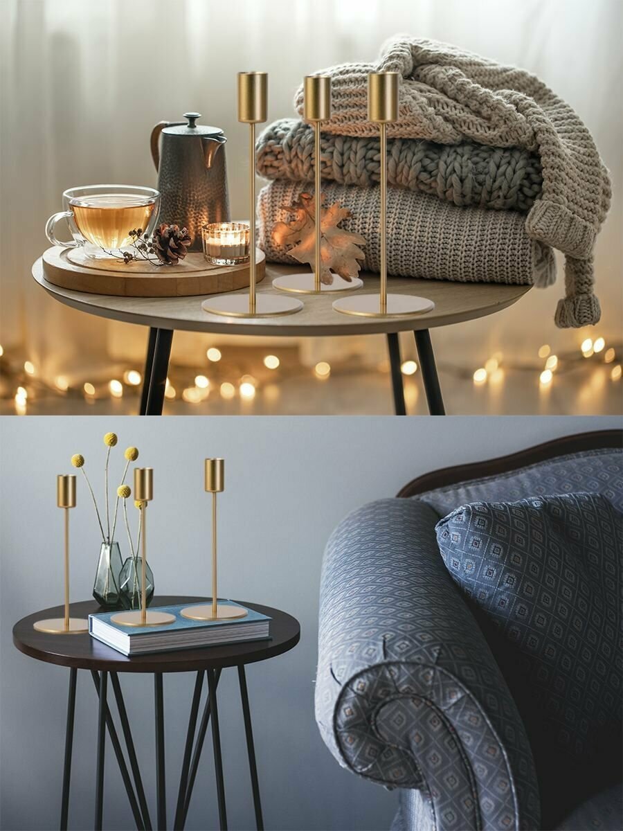 10 цен на Подсвечник металлический золотой набор для интерьера 3 шт