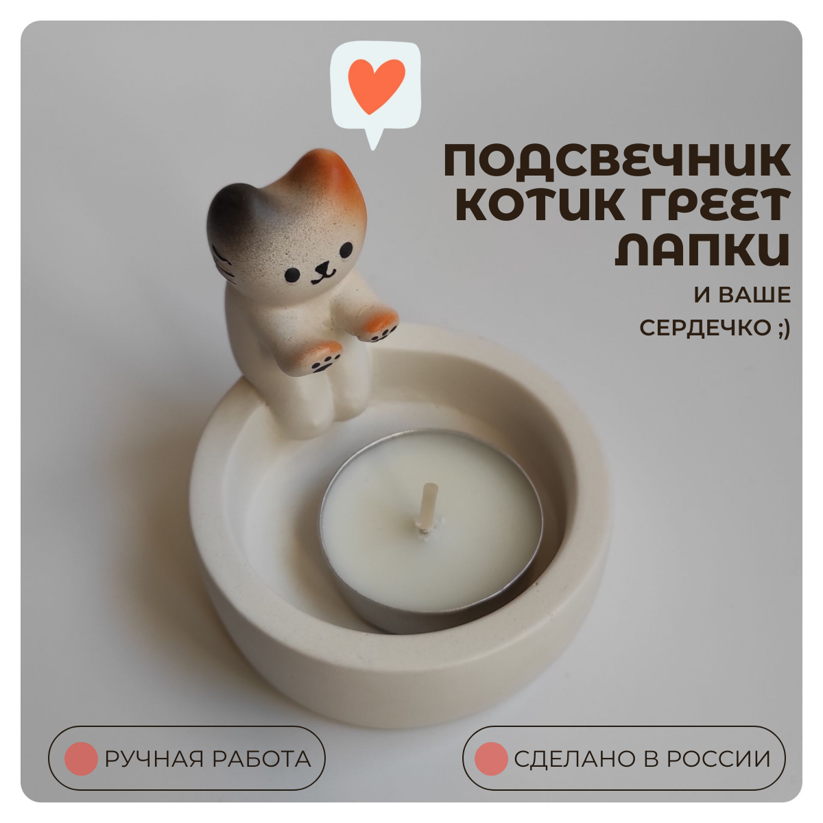 Подставка подсвечник котик греет лапки информация: