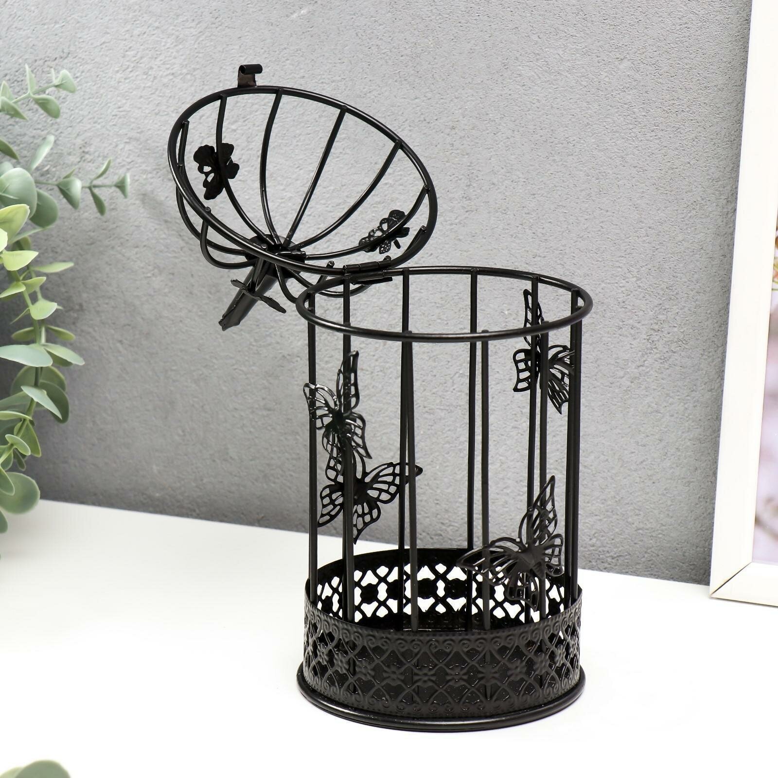10 цен на Подсвечник металл 1 свеча "Птица и клетка с бабочками" чёрный 21,5х10х10 см 5378086 .