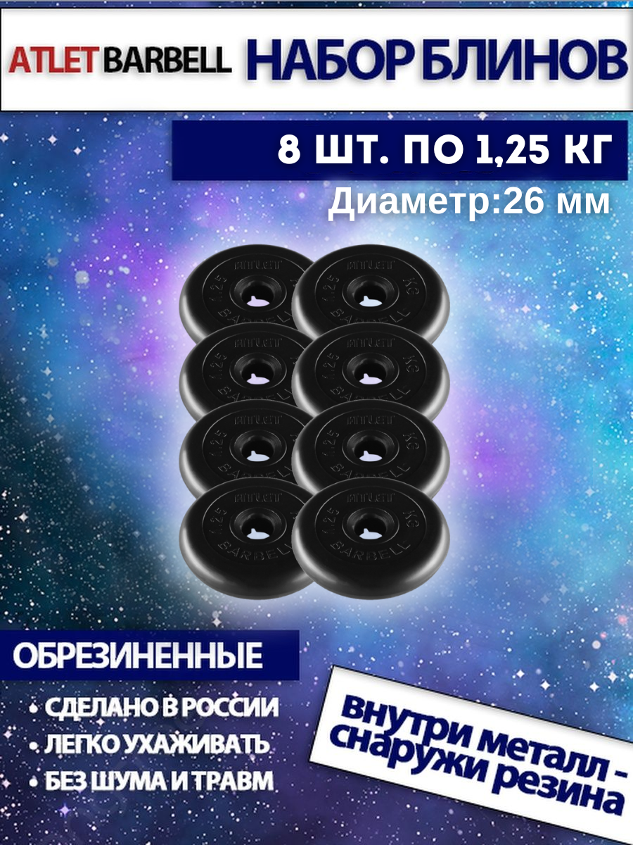 Комплект дисков Атлет (8 по 1,25 кг) 26мм информация: