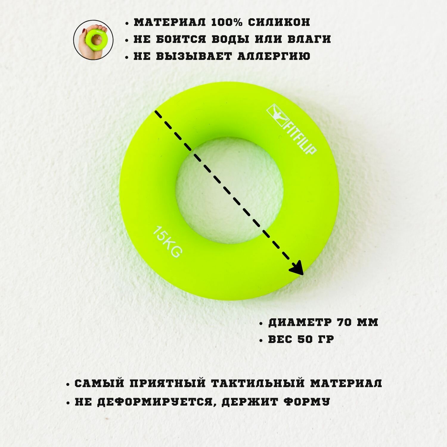 Эспандер кистевой силиконовый круглый для рук кольцо 15 кг информация: