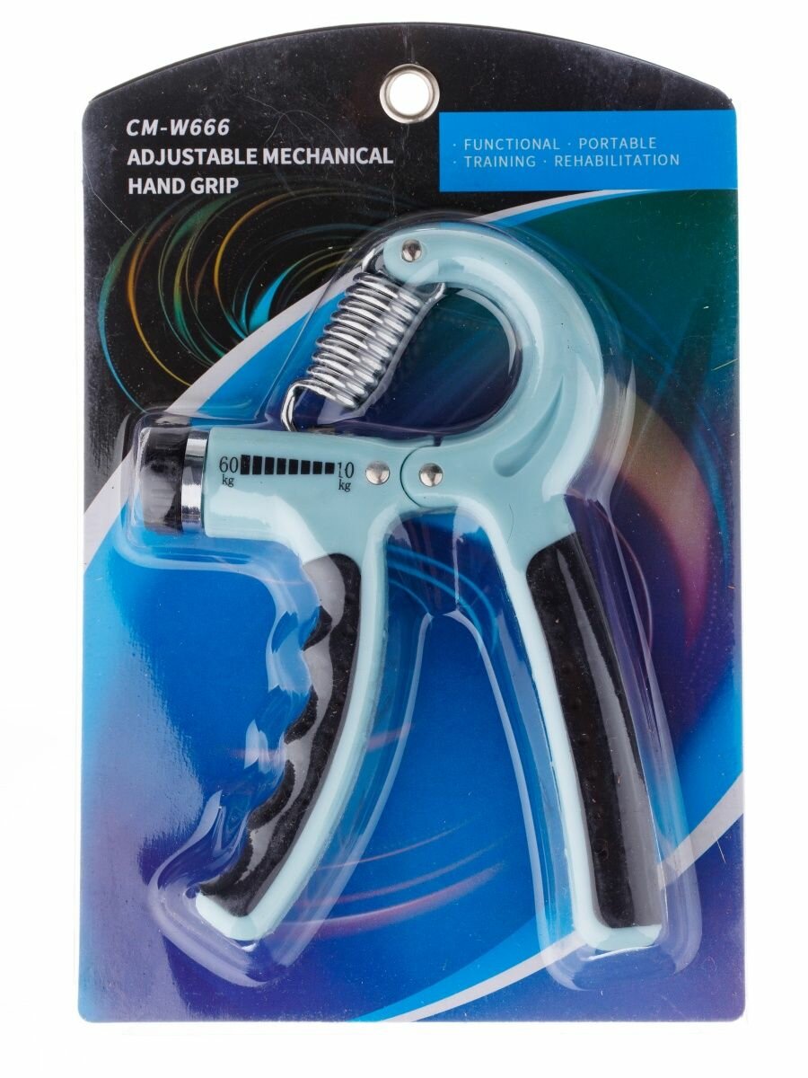 Эспандер кистевой Estafit регулируемый 10 - 60 кг для фитнеса рук пальцев пружинный детский и взрослый, голубой/черный информация: