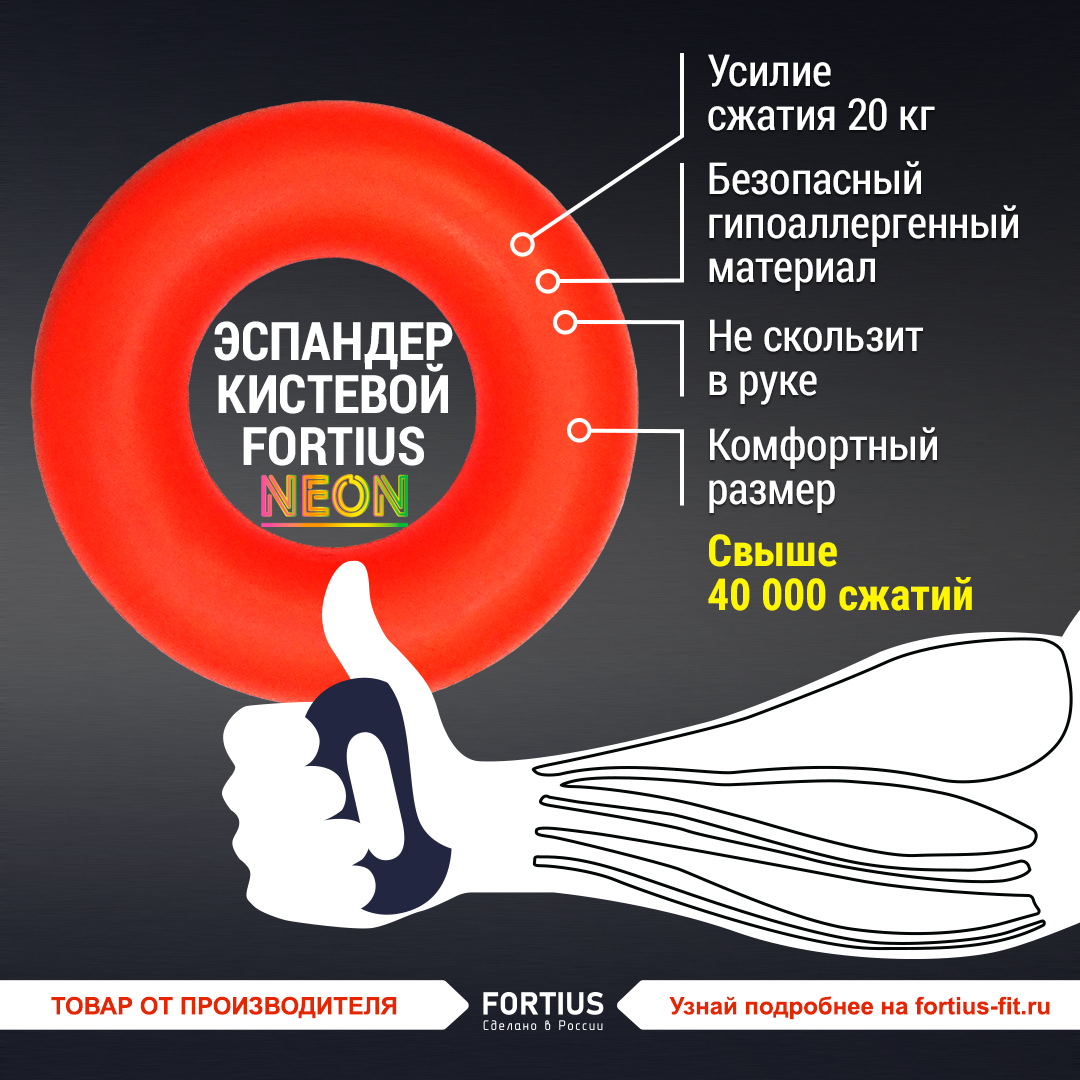 Эспандер кистевой FORTIUS Neon 20 кг, оранжевый