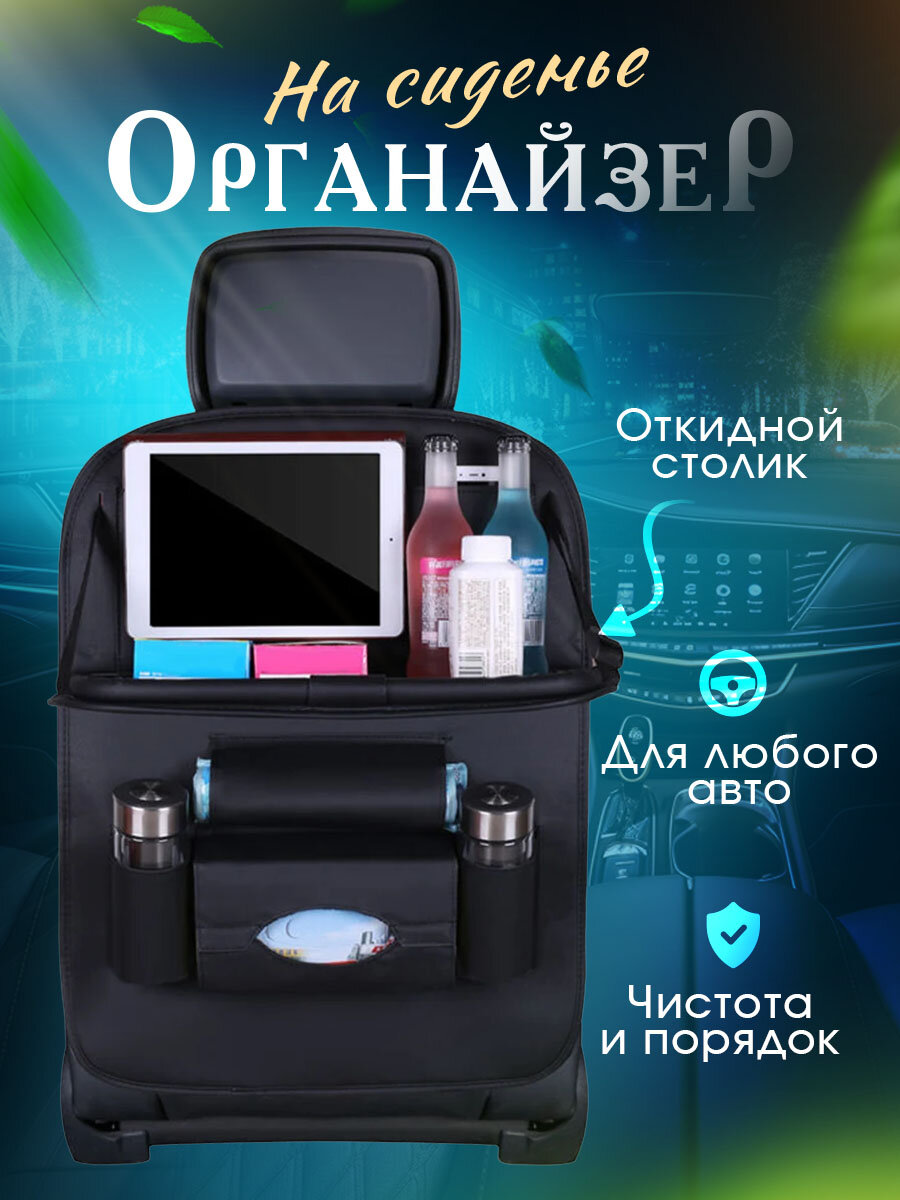 Отзывы на Органайзер автомобильный на спинку сидения со складным столиком, черный